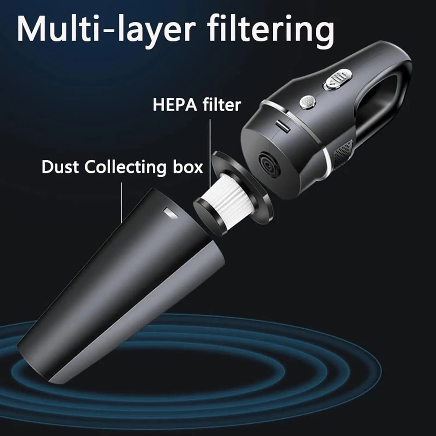 ¡Llevá la limpieza a cada rincón sin cables ni complicaciones! Esta aspiradora de mano recargable es la herramienta definitiva para mantener impecables tus espacios más difíciles de alcanzar. Su diseño compacto y potente succión la convierten en el accesorio ideal para el interior del auto, teclados de PC, cajones y muebles, permitiéndote limpiar con total libertad de movimiento gracias a su batería integrada.