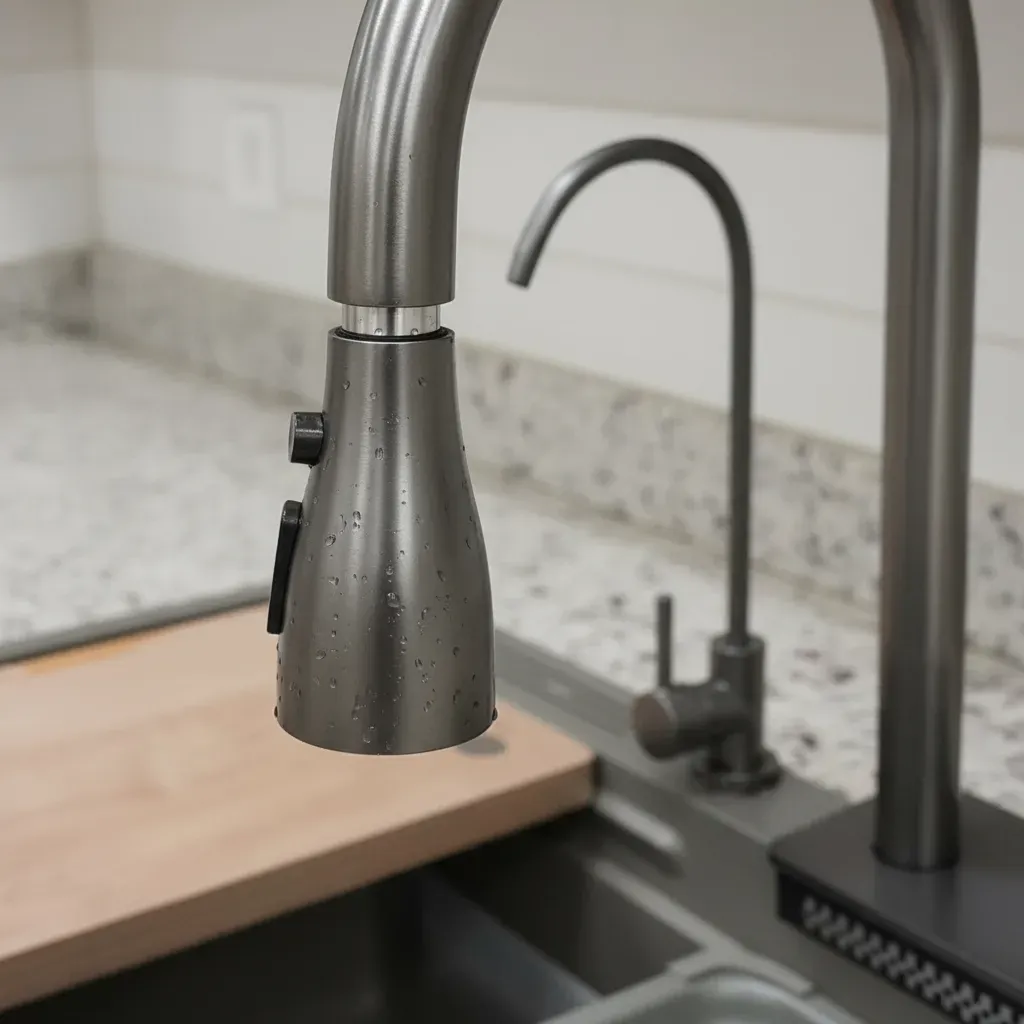 Grifería de Cascada Integrada: Innovador sistema de flujo de agua tipo cascada, ideal para el lavado delicado de frutas y verduras, cubriendo una mayor superficie con suavidad.
