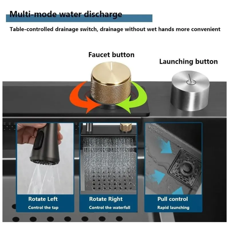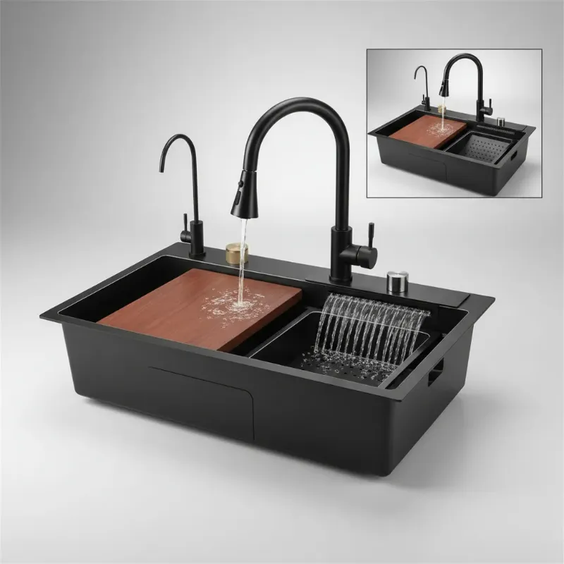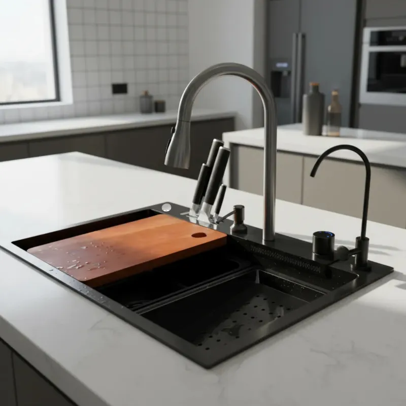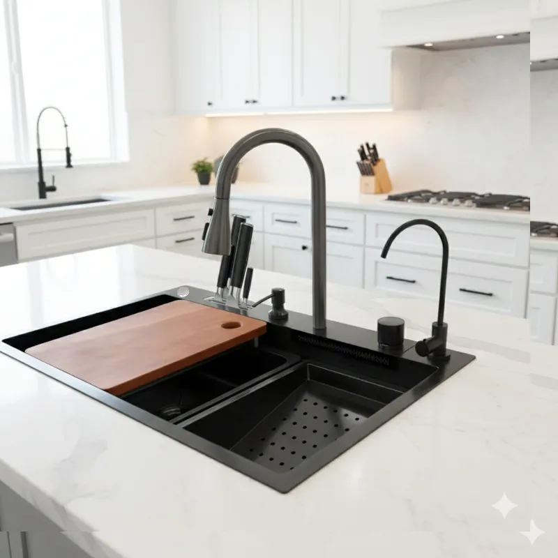 Bacha Inteligente Multifunción Negra – Lujo, Diseño y Alta Tecnología