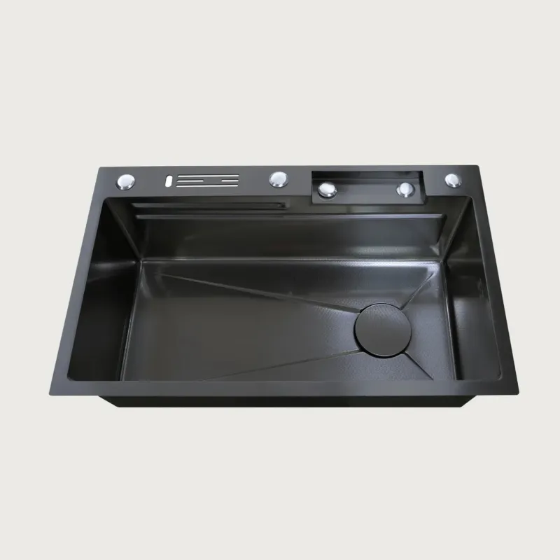¡Llevá el diseño de tu cocina al nivel de las tendencias internacionales! Esta bacha inteligente en acabado Negro Mate / Carbón es la pieza central definitiva para quienes buscan una estética sofisticada sin renunciar a la funcionalidad. Su superficie de alta tecnología no solo impacta visualmente, sino que integra sistemas de lavado avanzados que transforman las tareas cotidianas en una experiencia de confort y eficiencia.