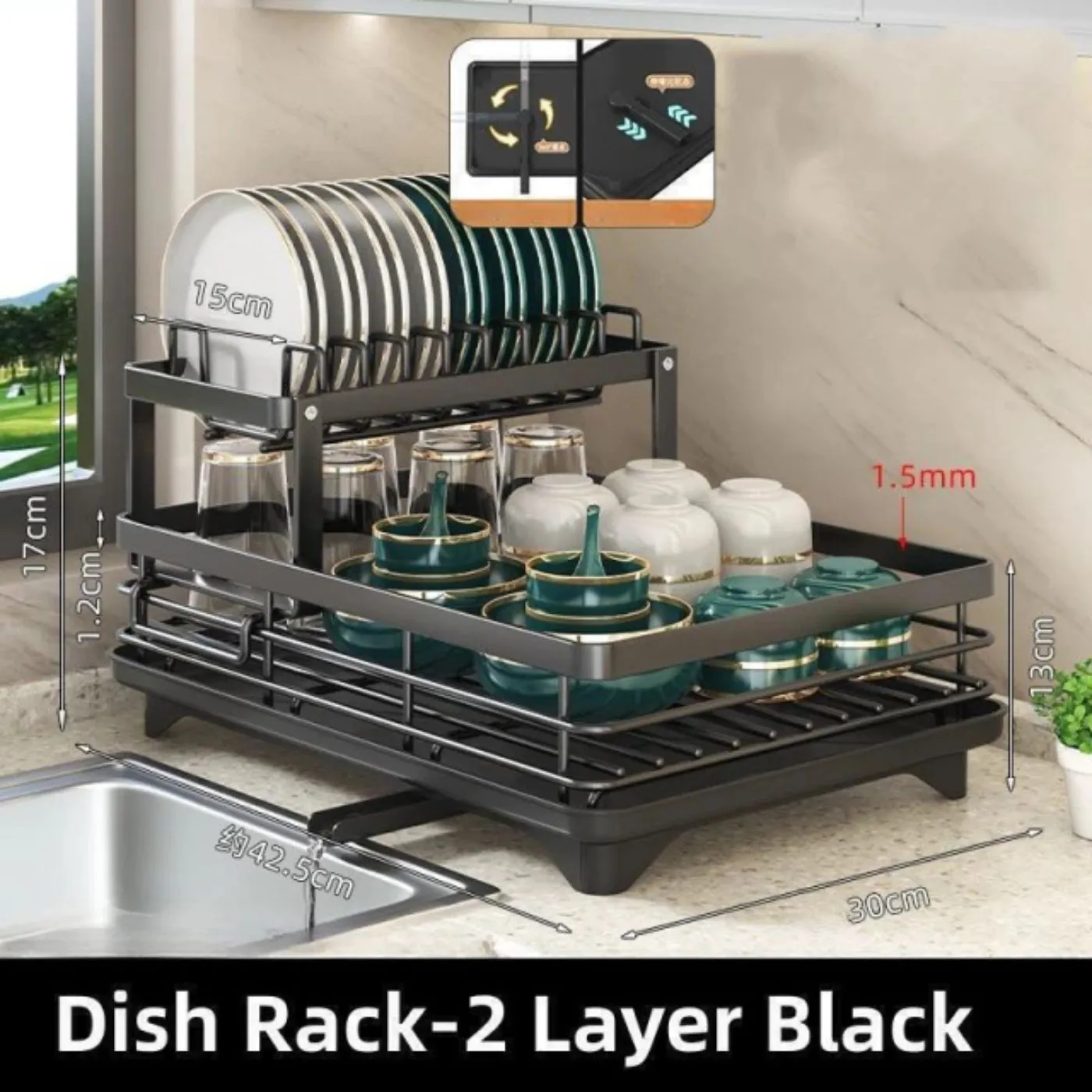 Kit de Organización Completo: Combina el soporte principal para platos con un accesorio específico para cubiertos o accesorios pequeños, optimizando cada rincón de la zona de lavado.
