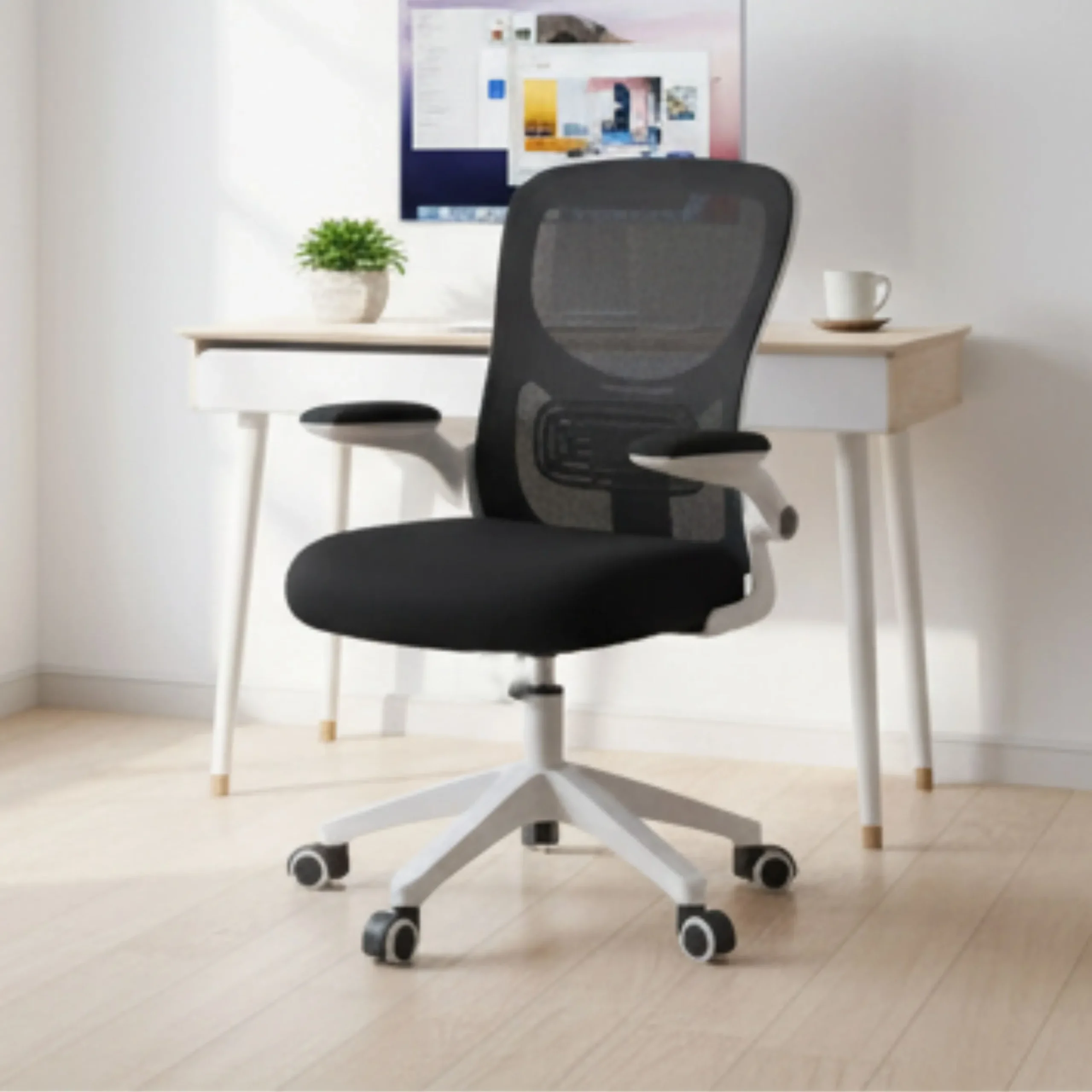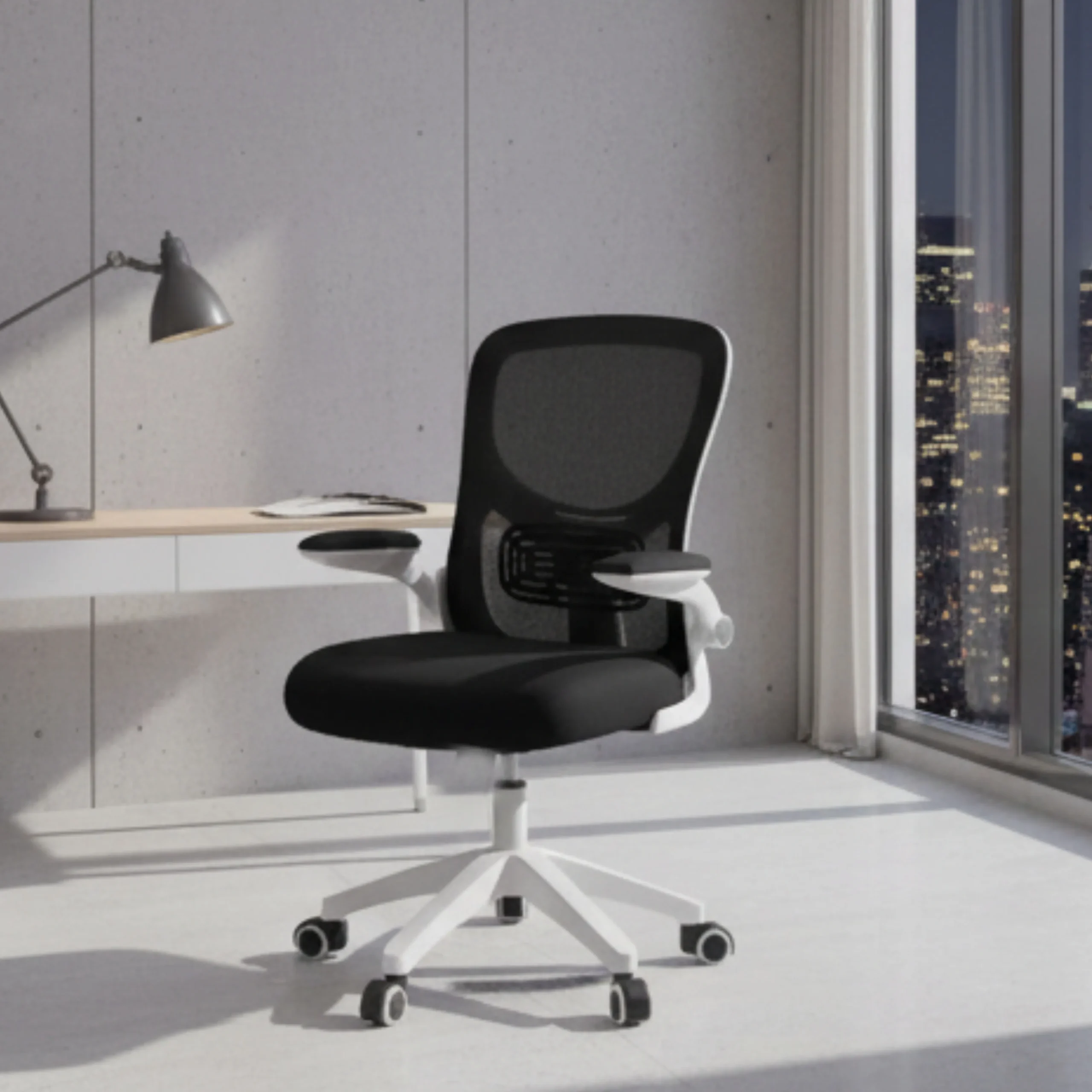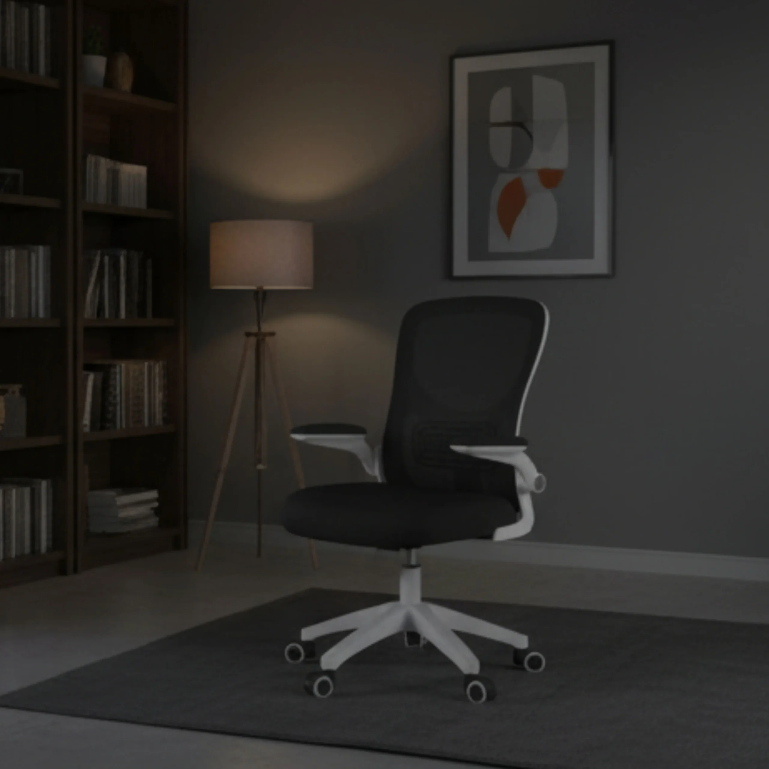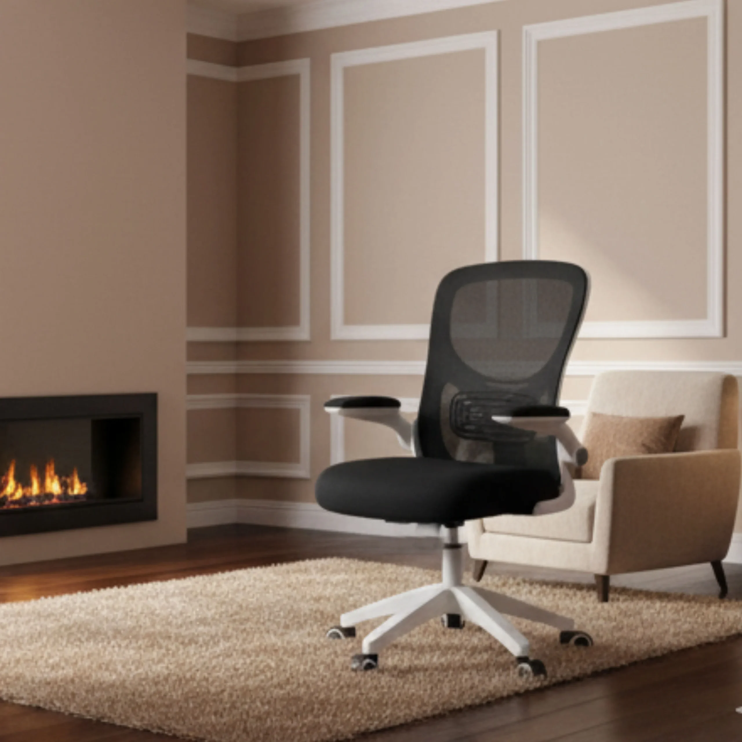 Apoyabrazos Rebatibles «Space-Saver»: Uno de sus puntos más fuertes. Los apoyabrazos acolchados pueden levantarse 90°, permitiendo que la silla se deslice completamente debajo del escritorio cuando no se usa, ideal para optimizar espacios en departamentos o habitaciones.