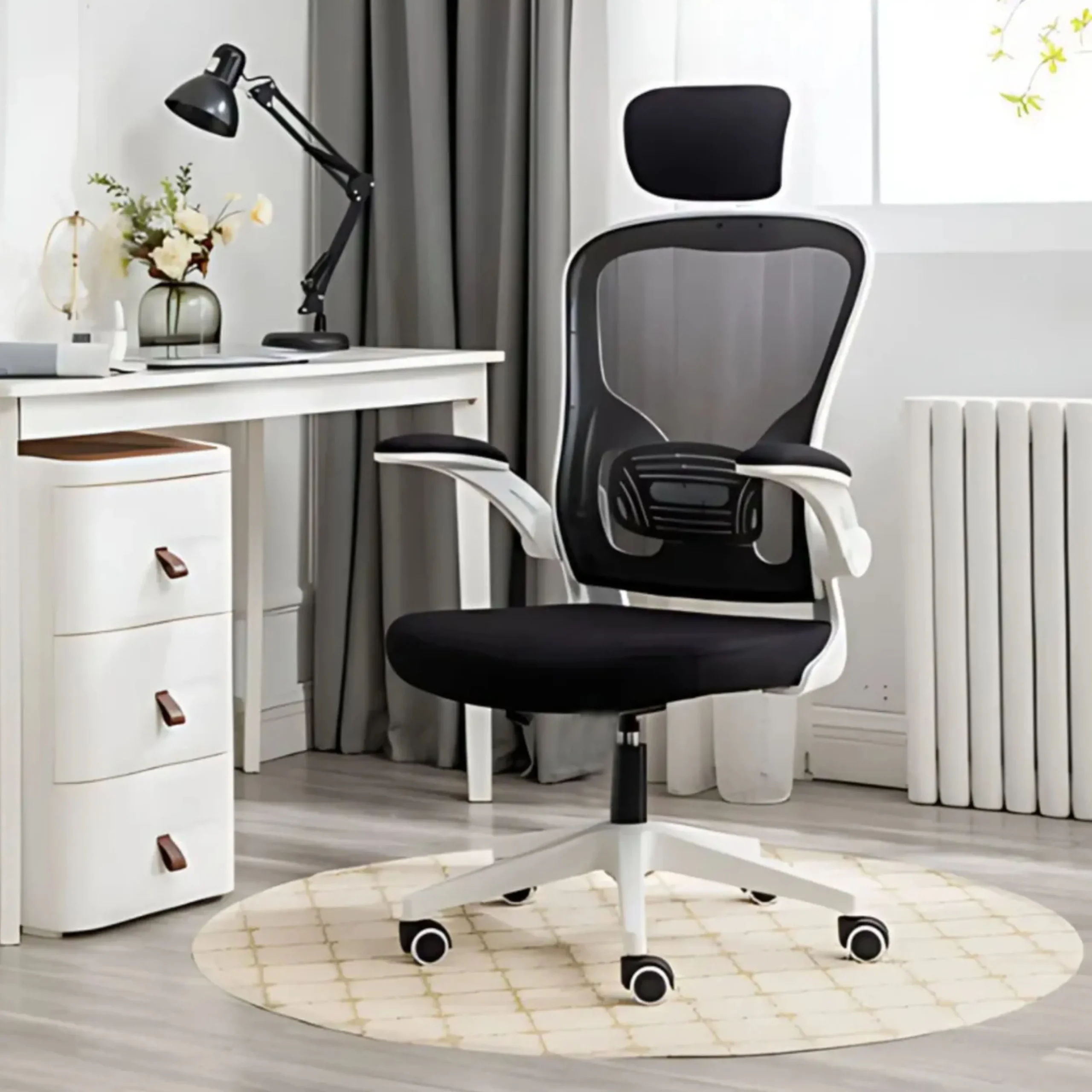 Reclinación y Balanceo Controlado: Sistema de basculación reforzado que permite pequeños momentos de relax entre tareas, con un ajuste de tensión personalizable según el peso del usuario.
